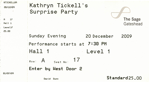 2009: Sting guested at Kathryn Tickell's Surprise Party at Sage Gateshead in Newcastle.